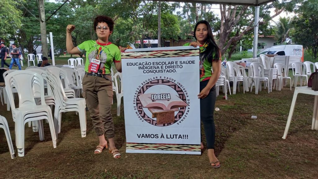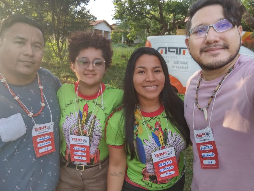 No final do mês de novembro e início de dezembro, Nayara, pertencente à etnia Kambeba, que ensina os alunos do 4° ano da educação infantil, através do Projeto Educomunicação Indígena como Fortalecimento Intercultural e Metodologia de Ensino. E Hemily, da etnia Ticuna, que também educa alunos do 5°ano por meio do Projeto Alfabetização e Letramento, estiveram presentes, à convite, no “VI Fórum Nacional de Educação Escolar Indígena – FNEEI: retomando as lutas para avançar nas conquistas”, ocorrido em Luziânia – GO, no entorno de Brasília – DF, do 30/11 a 03/12.