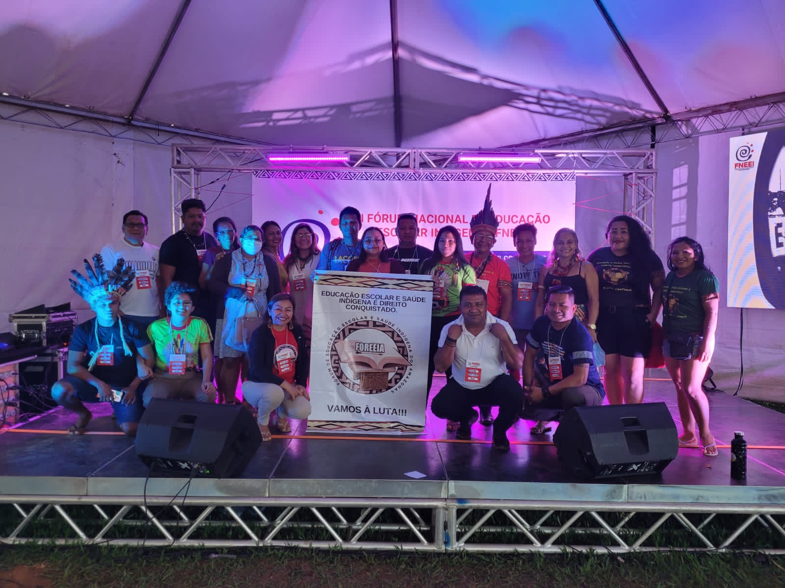 No final do mês de novembro e início de dezembro, Nayara, pertencente à etnia Kambeba, que ensina os alunos do 4° ano da educação infantil, através do Projeto Educomunicação Indígena como Fortalecimento Intercultural e Metodologia de Ensino. E Hemily, da etnia Ticuna, que também educa alunos do 5°ano por meio do Projeto Alfabetização e Letramento, estiveram presentes, à convite, no “VI Fórum Nacional de Educação Escolar Indígena – FNEEI: retomando as lutas para avançar nas conquistas”, ocorrido em Luziânia – GO, no entorno de Brasília – DF, do 30/11 a 03/12.
