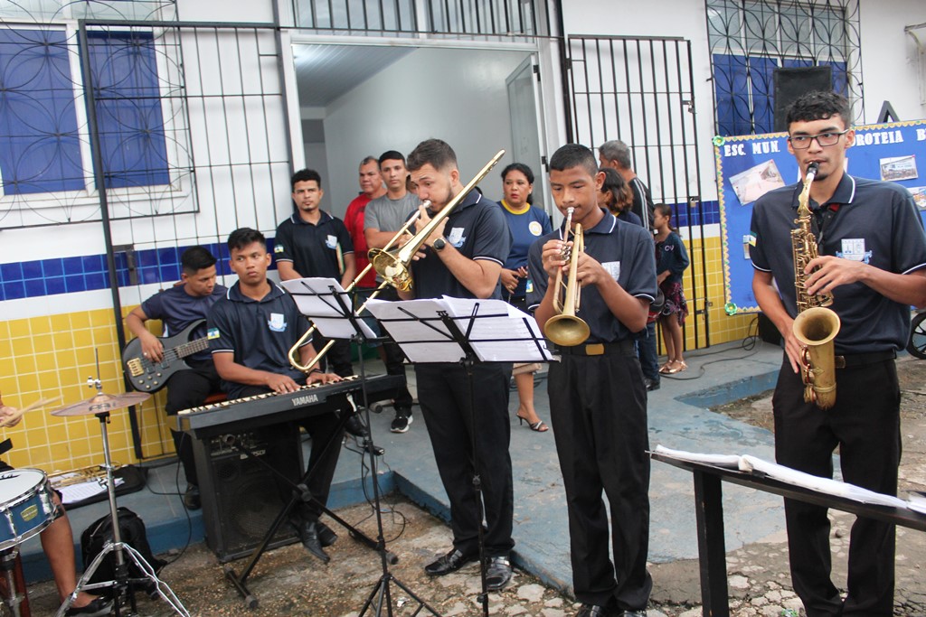 Estiveram presentes na programação, o Presidente da Câmara de Vereadores, Arnaldo do Nascimento, Coordenadores da SEMEEC, a Escola de Música Santa Cecília, e demais convidados.