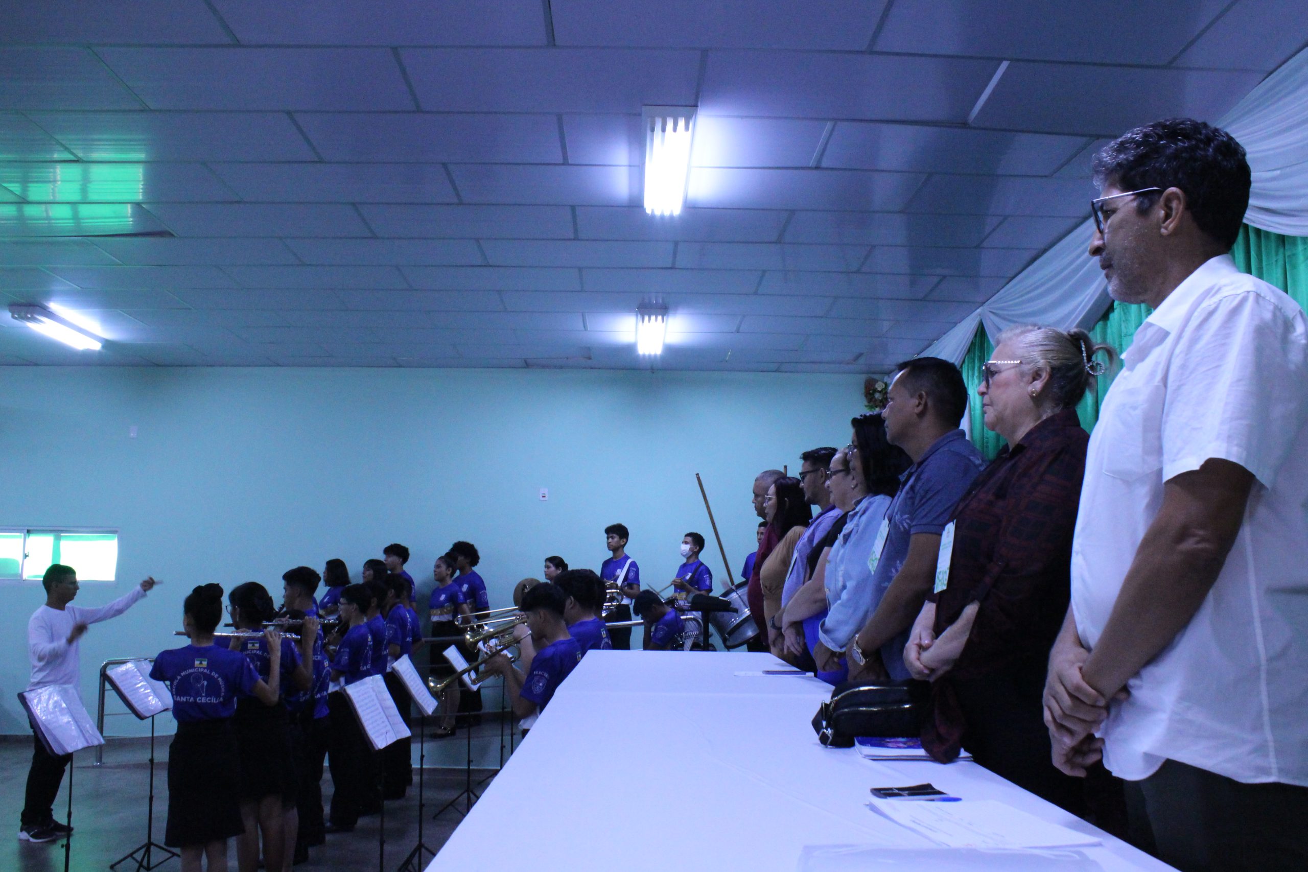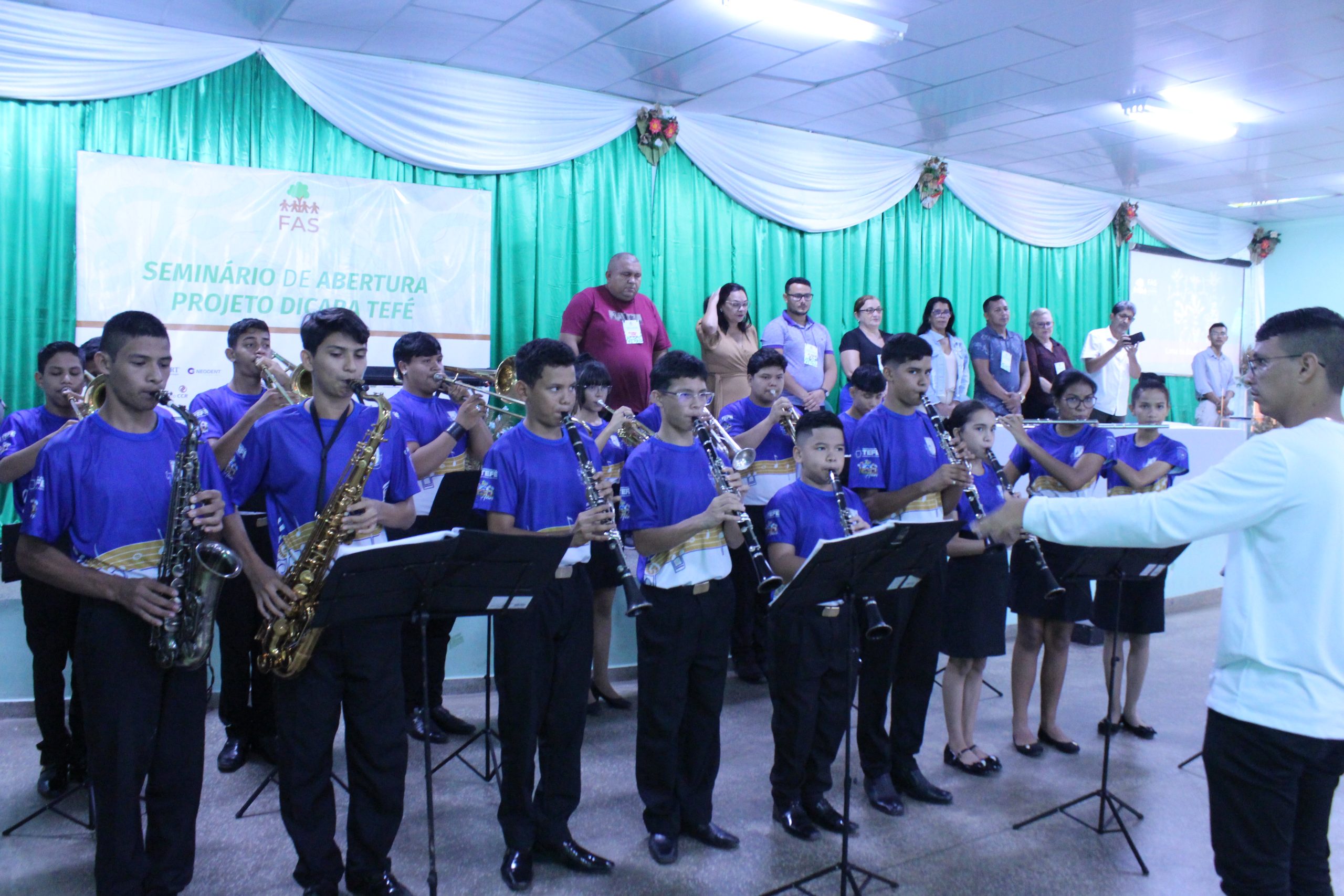 Abriram o evento as apresentações da Escola e Coral Municipal de Música Santa Cecília e a dança indígena dos alunos da Escola Municipal Rural Indígena Santa Cruz, localizada na comunidade indígena Nova Esperança, na Barreira de Baixo, interior tefeense.