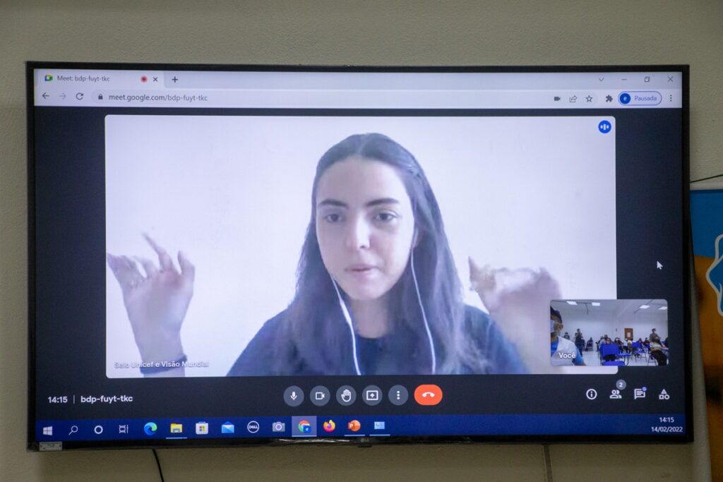 A discussão sobre o “Busca Ativa Escolar”, “Metas de Rematrículas e Prazos de Medição”, “Cadastro de Usuários”, “Alertas e Casos”, “Configurações da Plataforma”, além do “Acesso a PCJ e Linha de Base”, ficou sob responsabilidade de Maria Lucinete Trindade Bezerra, da Equipe da Visão Mundial.